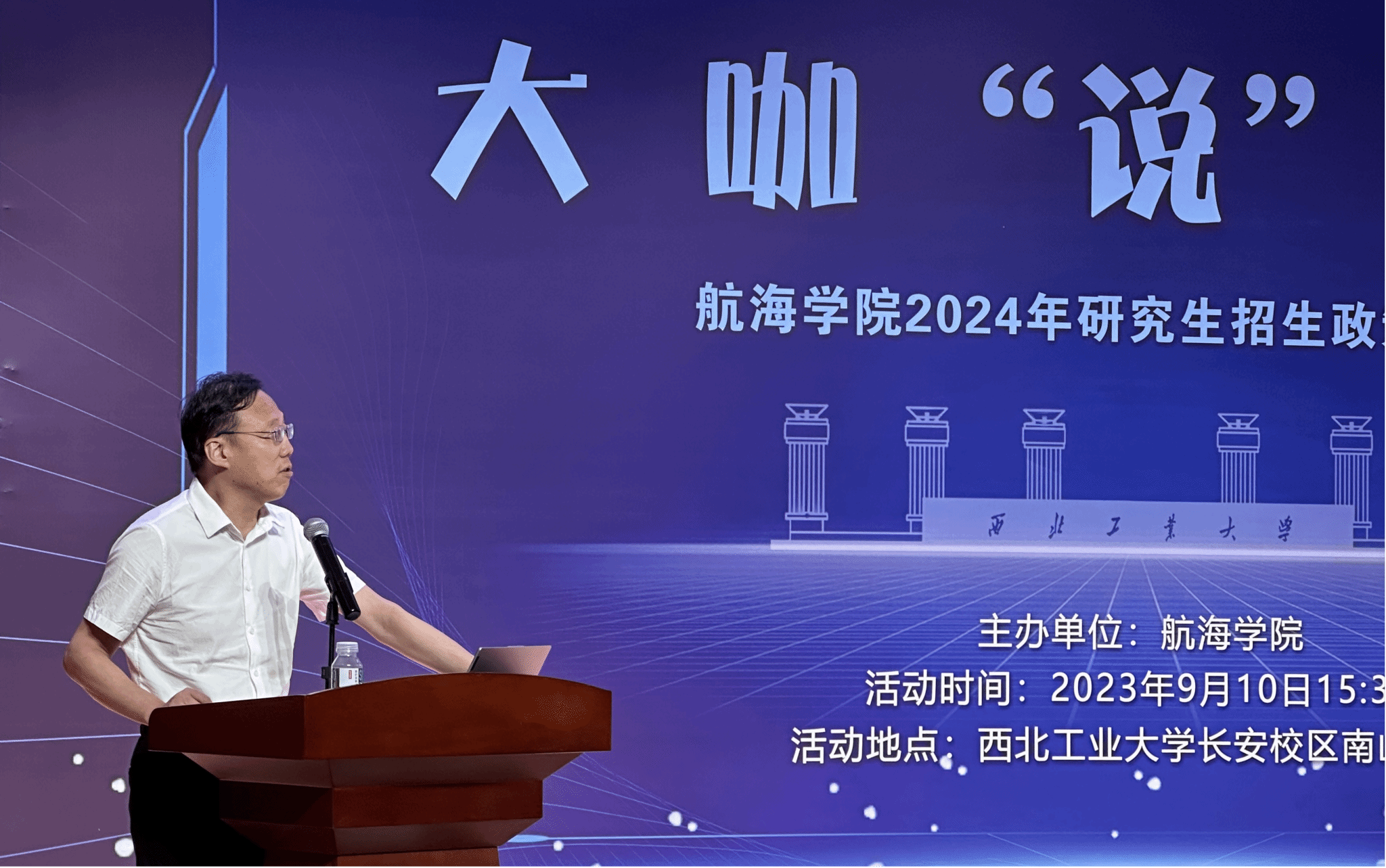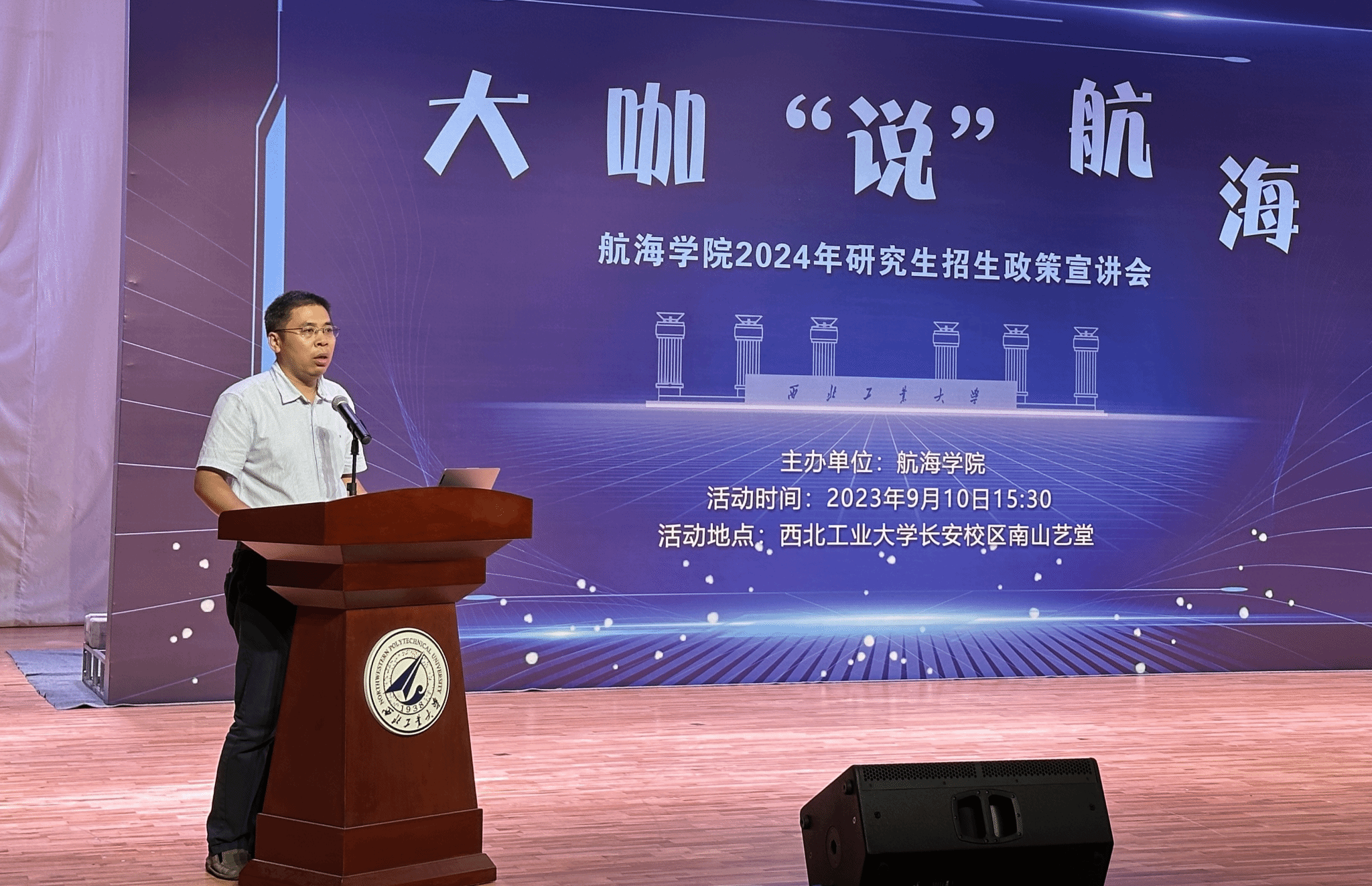 机关李娜主任、各教学部副主任与教师代表、学科建设与研究生教学办公室的老师们。本次活动面向校内大四学生开展,300余名学生与近20名教师共聚一堂,聆听大咖“说”航海。活动由曾向阳副院长主持。