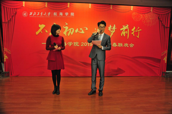 晚会由机关老师李玥和学生代表谢世伟共同主持。