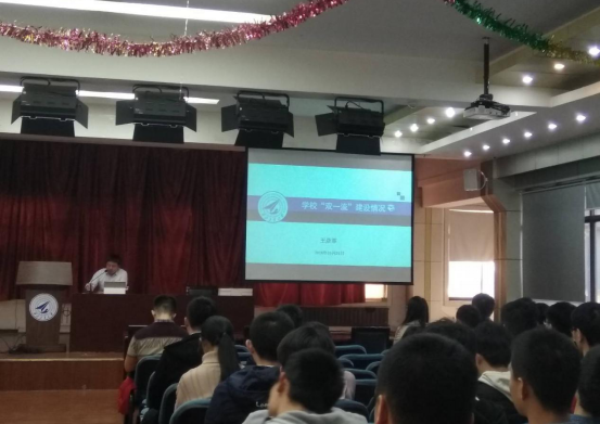 东配楼举行。王彦革书记作为主讲,为同学介绍了学校“双一流”建设情况,内容涵盖学校发展历史、“双一流”建设方案等,以“学生党员如何在学校‘双一流’建设中贡献力量”引发同学们的思考。课程内容丰富,氛围活跃,不仅让学员们了解了学校建设历程,更激起学员为学校建设共同努力的决心。